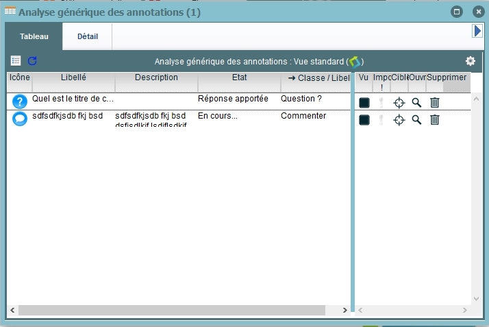 Ouvrez un tableau d'analyse pour retrouver et traiter l'ensemble des annotations.